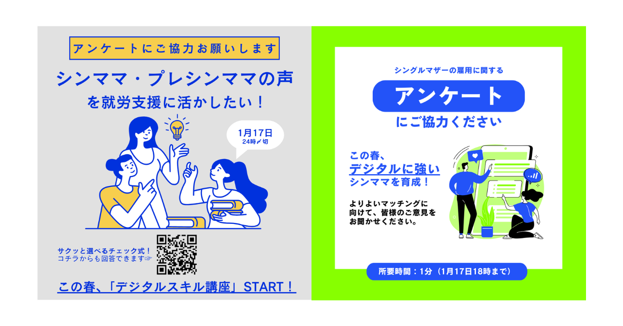 シングルマザー(プレシングルマザーさん含む)と企業向けのアンケートご協力をお願いしています。